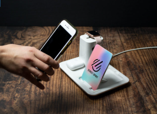 The Docksy is your three-in-one charging solution. Ideal for a nightstand or counter, the Docksy allows you to recharge each of your smart devices at once!