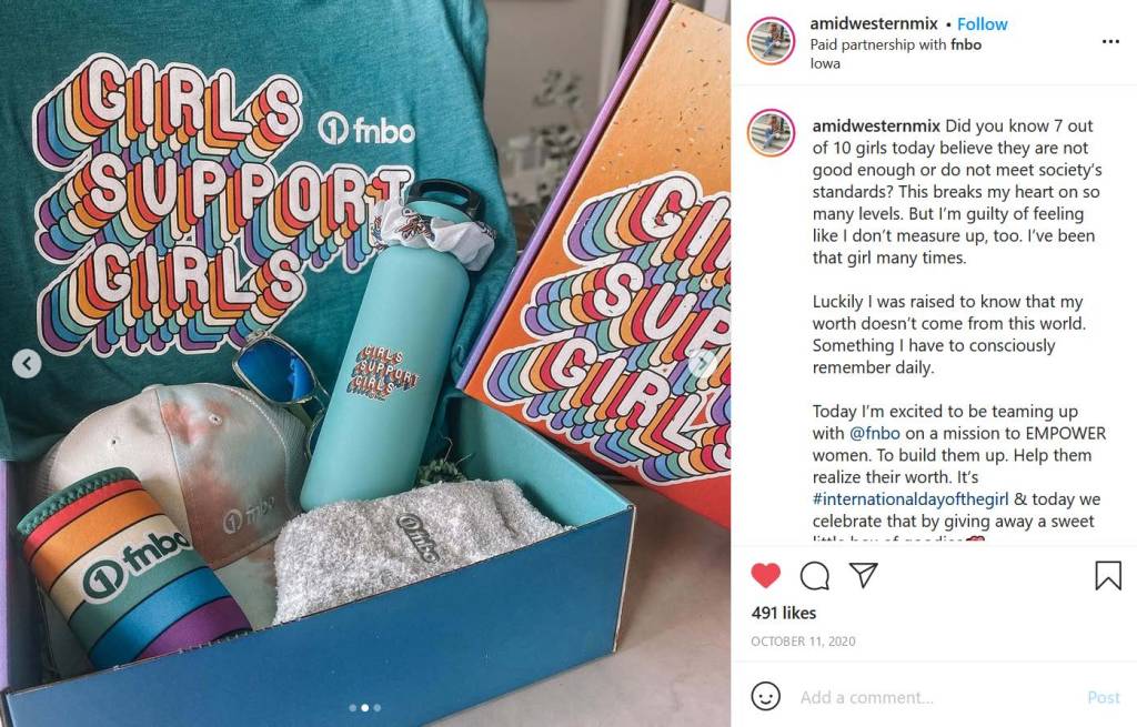 The campaign aimed to increase brand awareness for First National Bank of Omaha (FNBO). While growing their followers on Instagram, they co-branded giveaway items and tapped into their influencers’ audiences. Their mission was to combat the mentality that seven in ten girls have, that they weren’t good enough, or don’t measure up in some way.