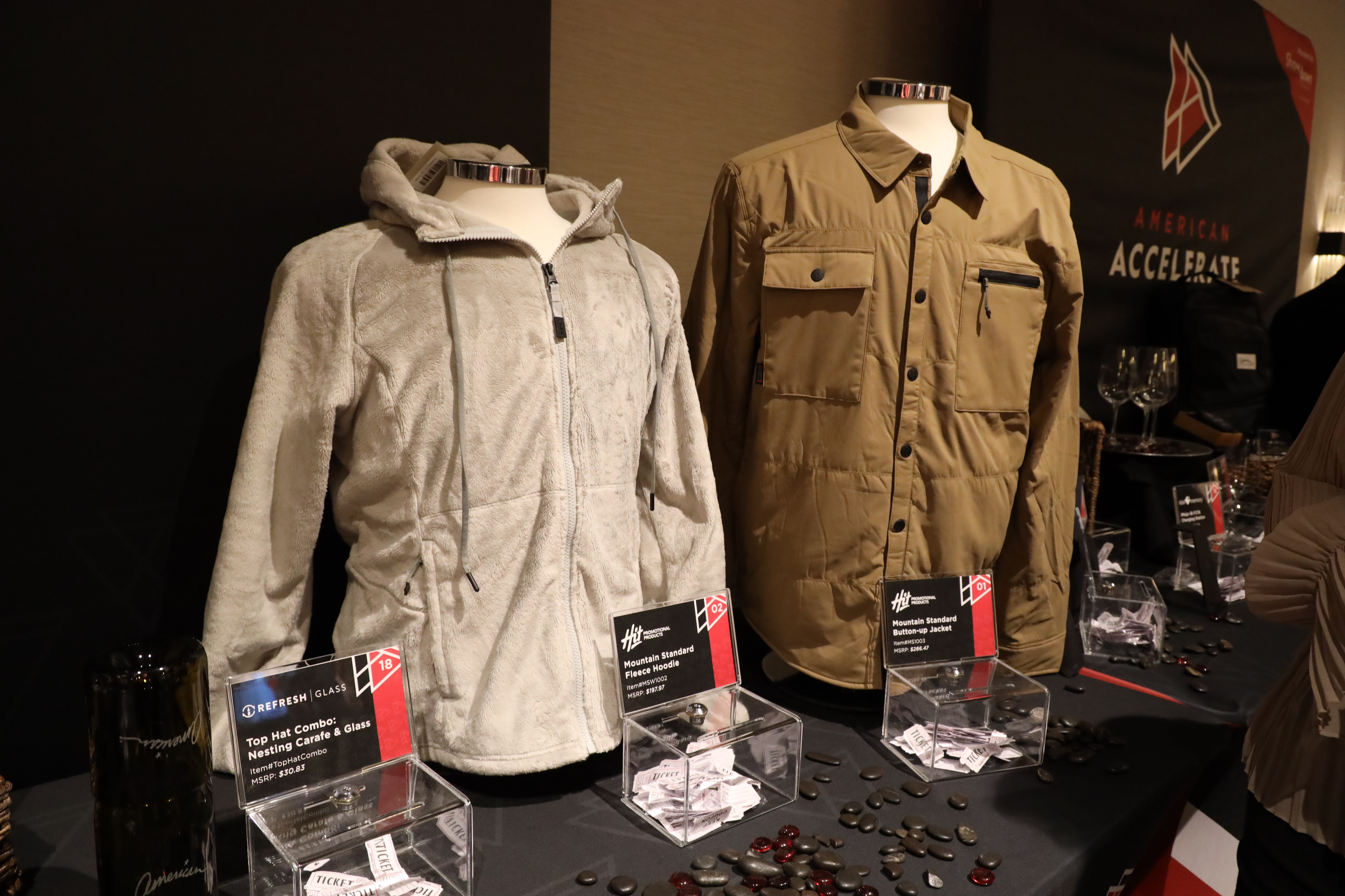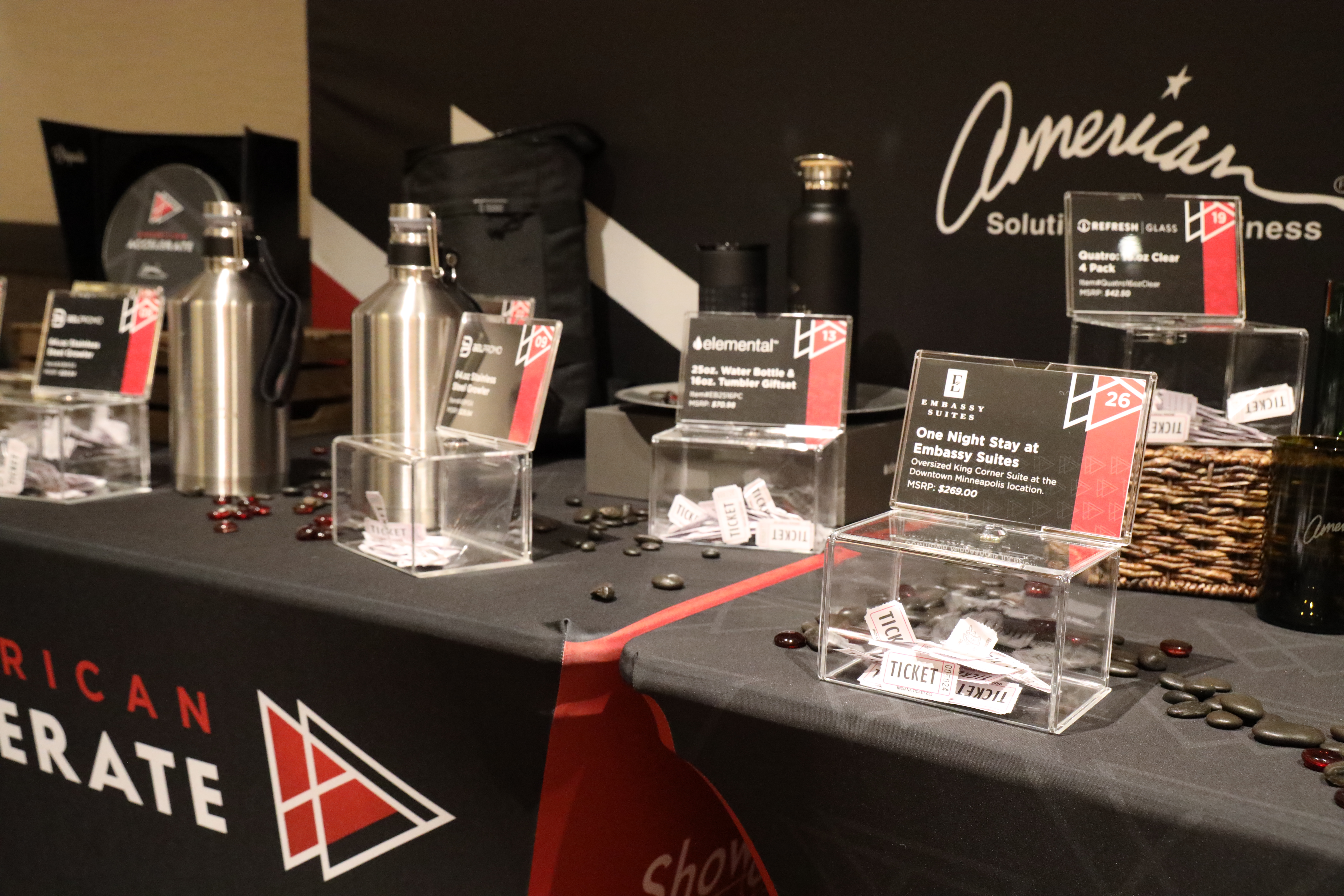 These prizes were donated by supporting suppliers of American Solutions for Business. These suppliers included A+ Wine Designs, BEL Promo, Compass, Elemental Bottles, Gemline, Hit Promo, HPG Brands, Idol Memory, J Charles, Links Unlimited, Refresh Glass, Rustico and S&S Activewear.