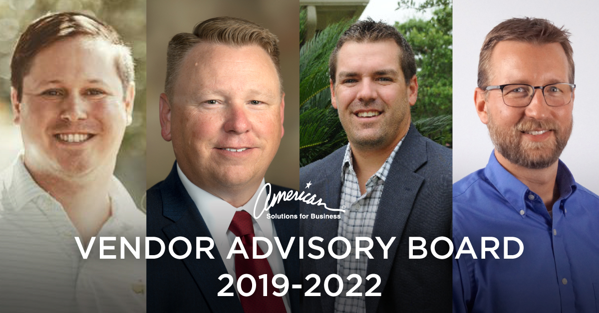 American Solutions for Business wants to take the time to thank the members of the Vendor Advisory Board that are wrapping up their term at the end of 2022. These members had an extended time on the board due to the complications of the pandemic and have been serving American since 2019. Over this time, they have met virtually and in-person to advise ASB leadership in events, marketing, technology and other areas of the business. This has resulted in stronger relationships with supplier partners and more resources available for ASB associates to ultimately grow sales.
