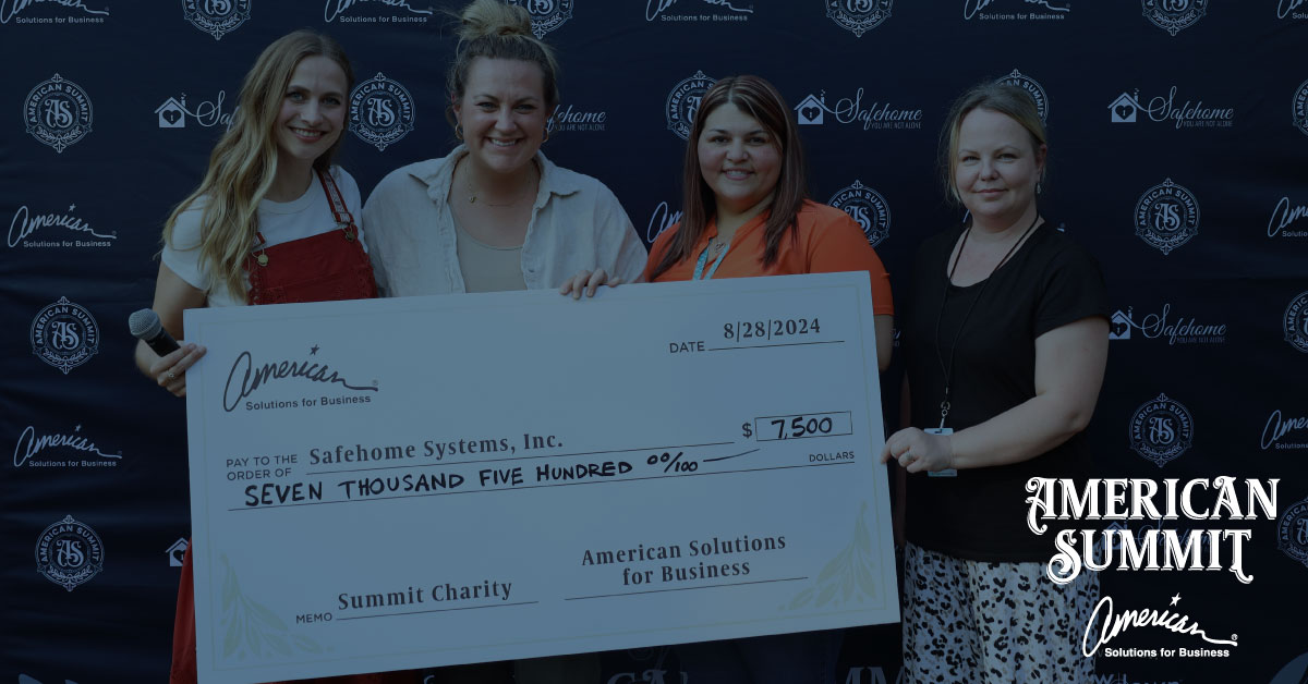 American Solutions for Business raised $7,500 for Safehome during the 2024 American Summit in Hot Springs, Virginia. Safehome is a not-for-profit organization dedicated to providing advocacy and support services to survivors of domestic, dating, and sexual violence. These efforts and donations were made possible by the generosity of the Summit attendees and entire American family.