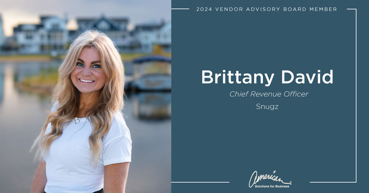 Welcome to this month’s Vendor Advisory Spotlight, where we celebrate the outstanding individuals contributing to the ongoing success of American Solutions for Business. This month, we’re excited to feature Brittany David, Chief Revenue Officer with SnugZ.